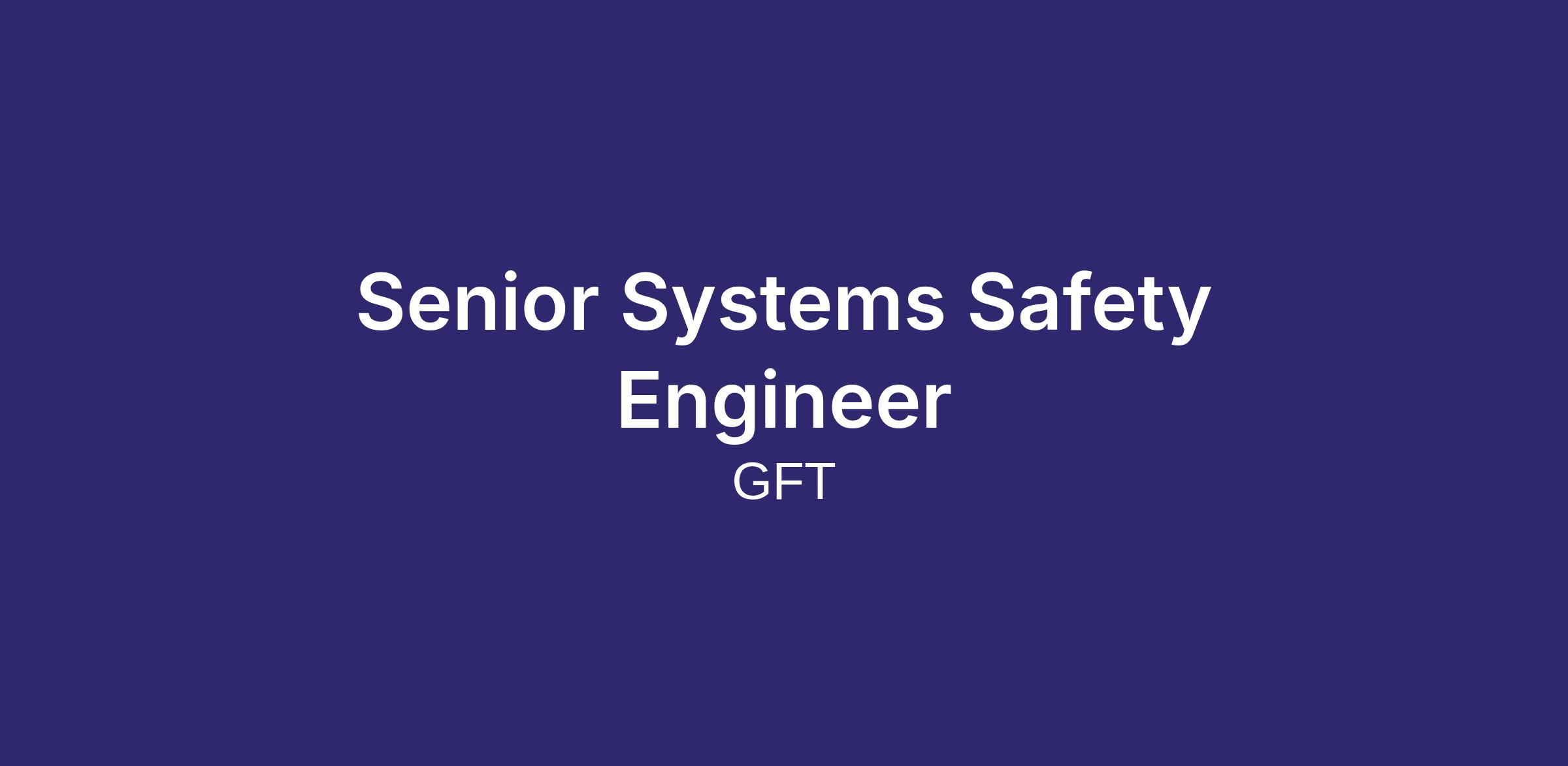 GFT is seeking a Senior Systems Safety Engineer to join our Practice or CBG Team! This role follows a hybrid work model, requiring regular attendance at our Toronto office.
